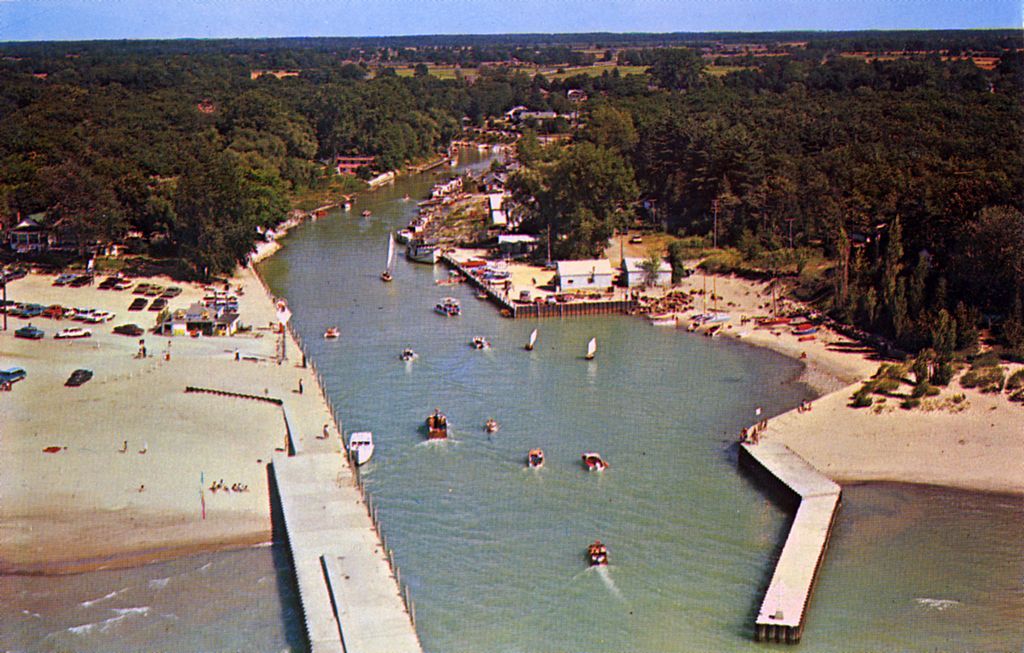 In response to a local petition, the township cut a new riverbed directly to the lake along an old portage route in 1892. This improved drainage in surrounding farmland and provided access to the Lake Huron fishery.
